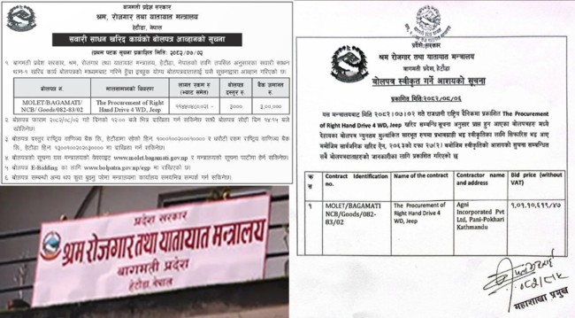 जनताको करबाट महँगा जीप खरिदः बागमती सरकारको निर्णय विवादमा
