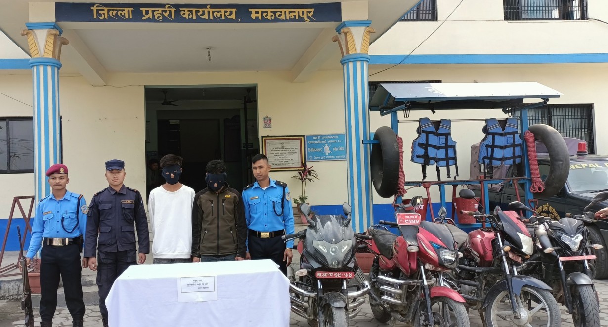 जिल्ला प्रहरी कार्यालय मकवानपुरले मोटरसाइकल चोरी गर्ने दुईजनालाई पक्राउ गरी सार्वजनिक गरेको छ ।