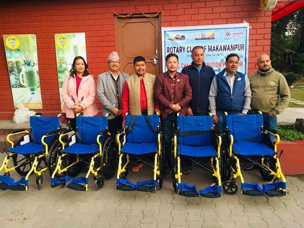 रोटरी क्लब अफ मकवानपुरले ह्वीलचियर वितरण गरेको छ । मकवानपुरे समाज काठमाडौंलाई ५ थान र हेटौंडा सामुदायिक आँखा अस्पताललाई २ थान ह्वीलचियर वितरण गरिएको हो ।